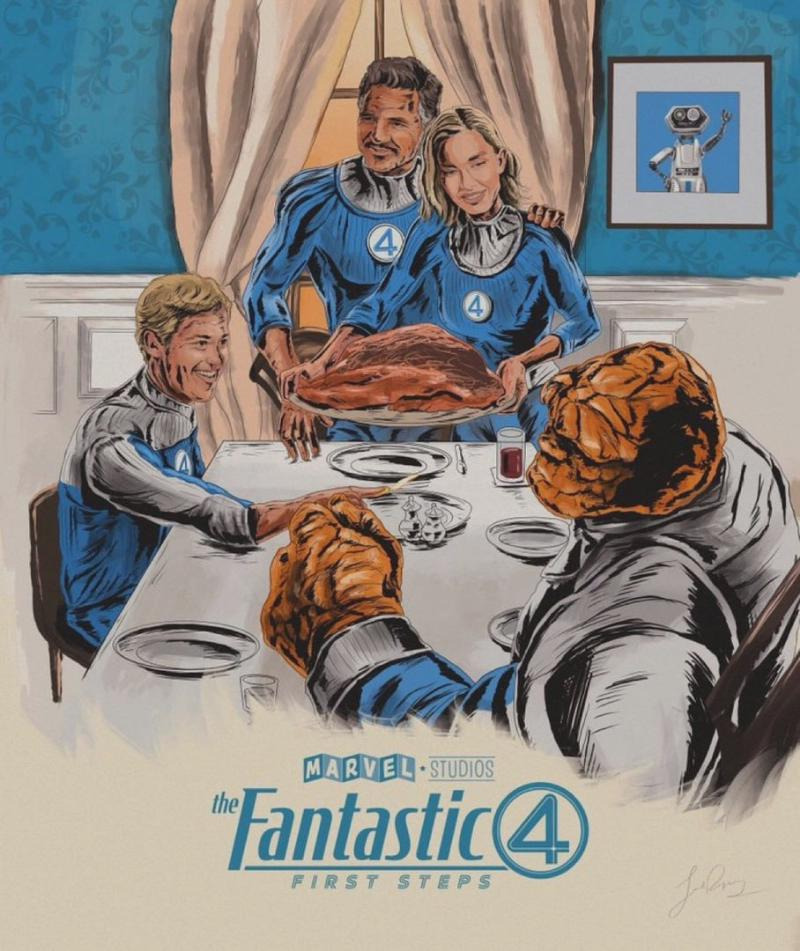 Педро Паскаль (Рид Ричардс), Ванесса Кирби (Сьюзан Шторм), Эбон Мосс-Бахрак(Бен Гримм) и Джозеф Куинн ( Джонни Шторм)!