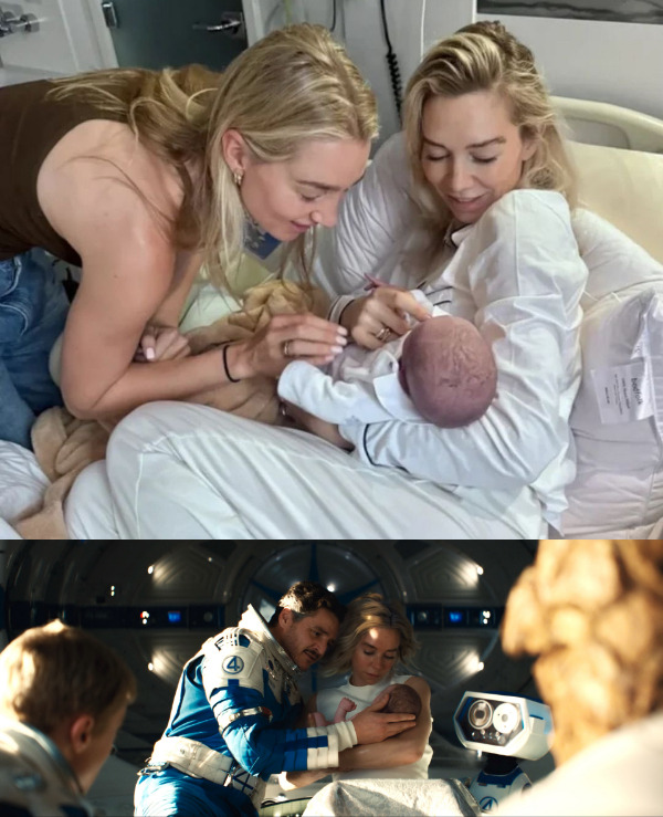 В целом ещё в трейлере зацепила вот вся эта эстетика футуризма, ретро-машины и прочее - именно визуал прекрасен. Музыка хороша, чувствами играют. Очень понравился Джозеф Куинн, хотя была уверена, что Джонни оставят этаким клоуном (в целом так и было, но раскрыли его лучше). Понимаю, что время прошло, Четвёрка себя зарекомендовала и никто в Бена какашками не кидается, даже вон любят, но в тех фильмах нулевых как будто и внешний вид получше, и характер. Хотя не сказать, что его раскрыли. Сью и Рид... Ну, Педро Паскаль замечательный.