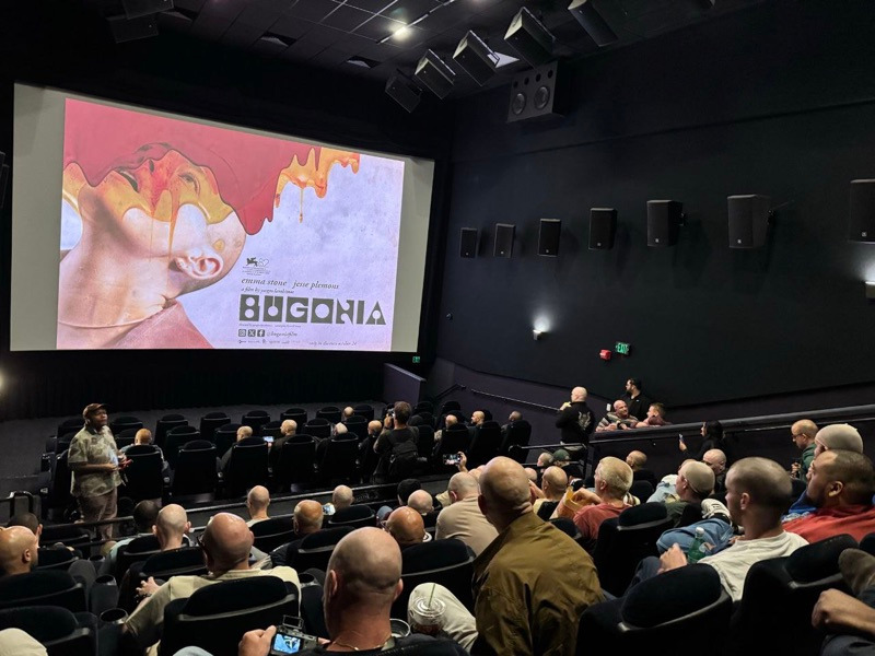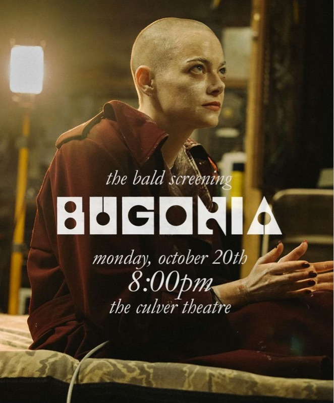 В Кловер-сити, Калифорнии любой мог попасть на сеанс «Бугонии» за 10 дней до премьеры широкого проката фильма бесплатно, но с оговоркой: перед просмотром вас побреют налысо