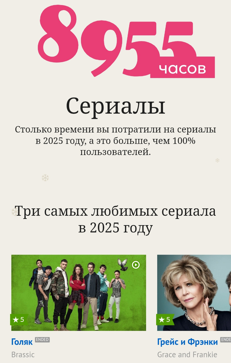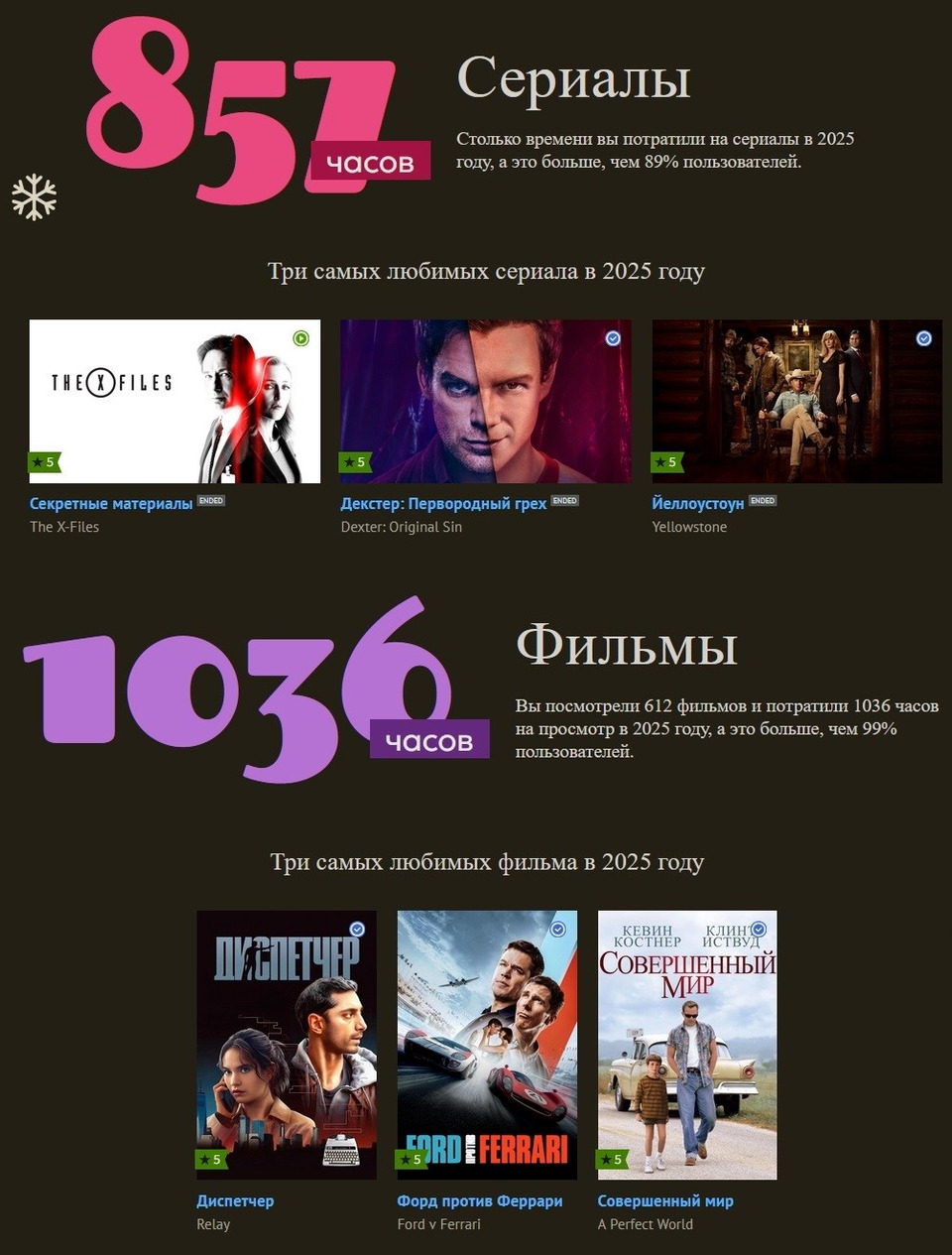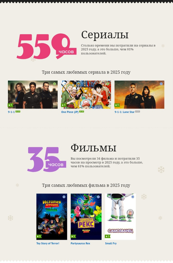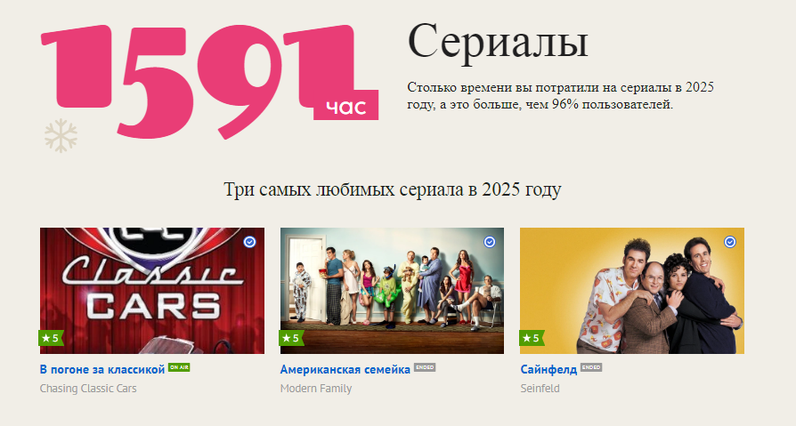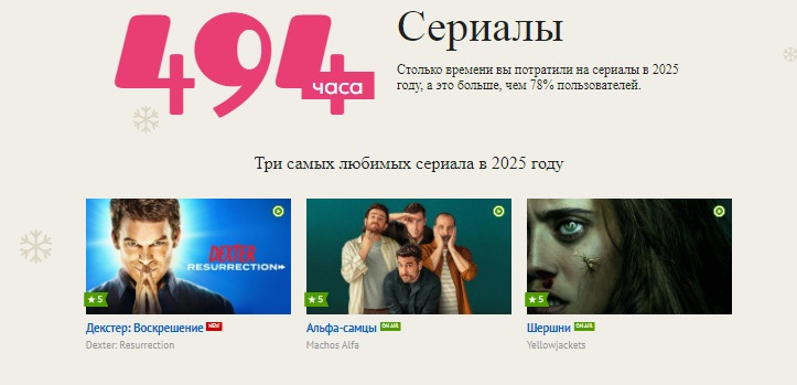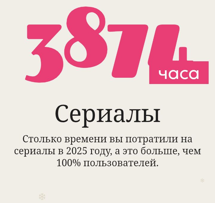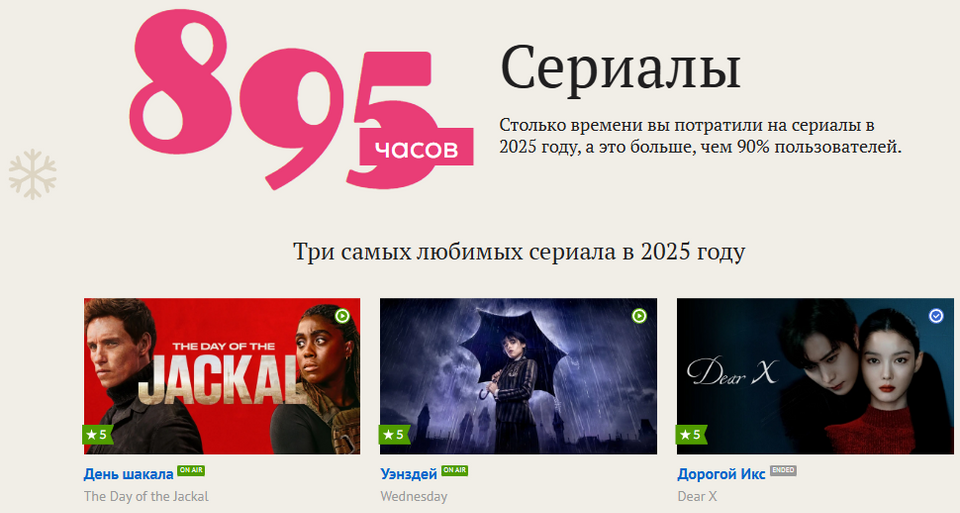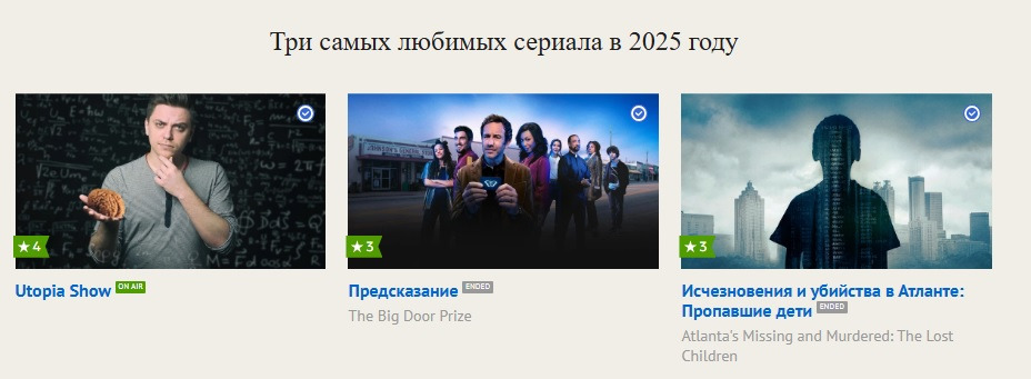 -Не согласна( не понимаю, чьи они любимые сериалы 2025 года? точно не мои. Я бы поняла еще если бы были выбраны сериалы которым я поставила самые высокие оценки в этом году, но нет выбраны просто случайные сериалы которые я просмотрела