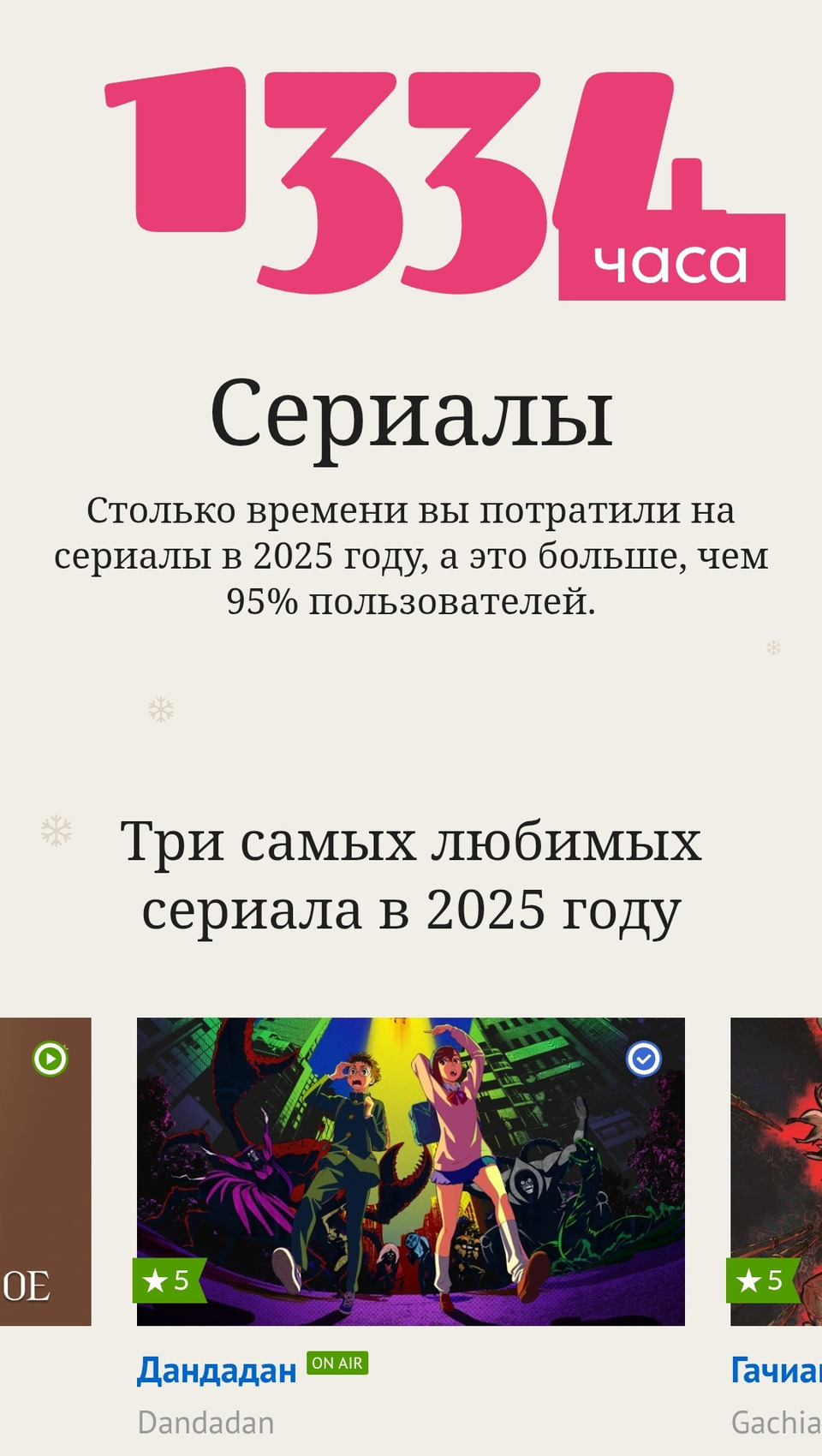 Итоги года, конечно, странные. У меня показывает, что 2 из 3 моих любимых сериала это «Лунтик и его друзья». Ну да ладно, хоть посмеялась с этого😁