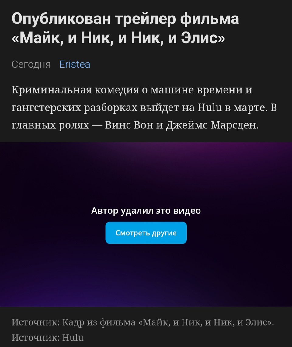 Стриминг Hulu представил первый трейлер фильма «Майк, и Ник, и Ник, и Элис». В ролике герой Винса Вона инструктирует персонажа Джеймса Марсдена, как усыпить «другую версию» самого себя — и это только начало цепочки временных парадоксов. Премьера запланирована на 27 марта 2026 года.