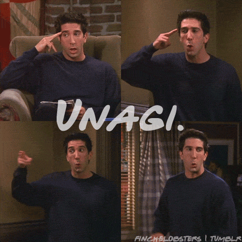 С этой серии началась моя любовь к друзьям и до сих пор одна из любимейших серий,пересматриваю время от времени сериал и всегда смеюсь как в первый раз. УНАГИИИ 😂😂😂
