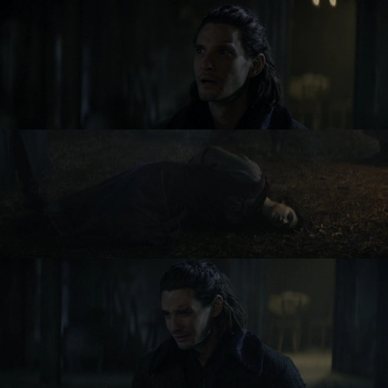 И опять они всунули диалог про память и верность воронов ни к селу, ни к месту. Но то есть зачем нам это сейчас показали?? Это блин в конце второй книги Воронов и имеет смысл. А тут он это говорит и вообще не понятно причем тут вороны. Нам ведь в сериале даже не сказали почему именно вороны, только показали что бар так назывался 🤦♀️