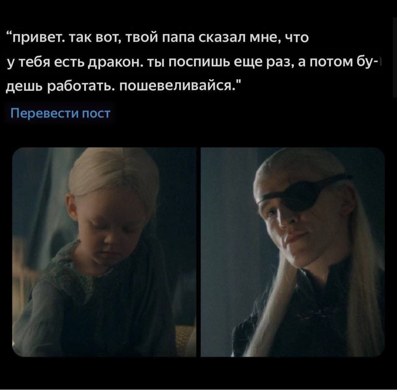 Но я все равно считаю, что виновата во всем Алисента. Если бы не ее бредни и жажда власти Отто Хайтауэра, Рейнира бы спокойно заняла заслуженный престол.