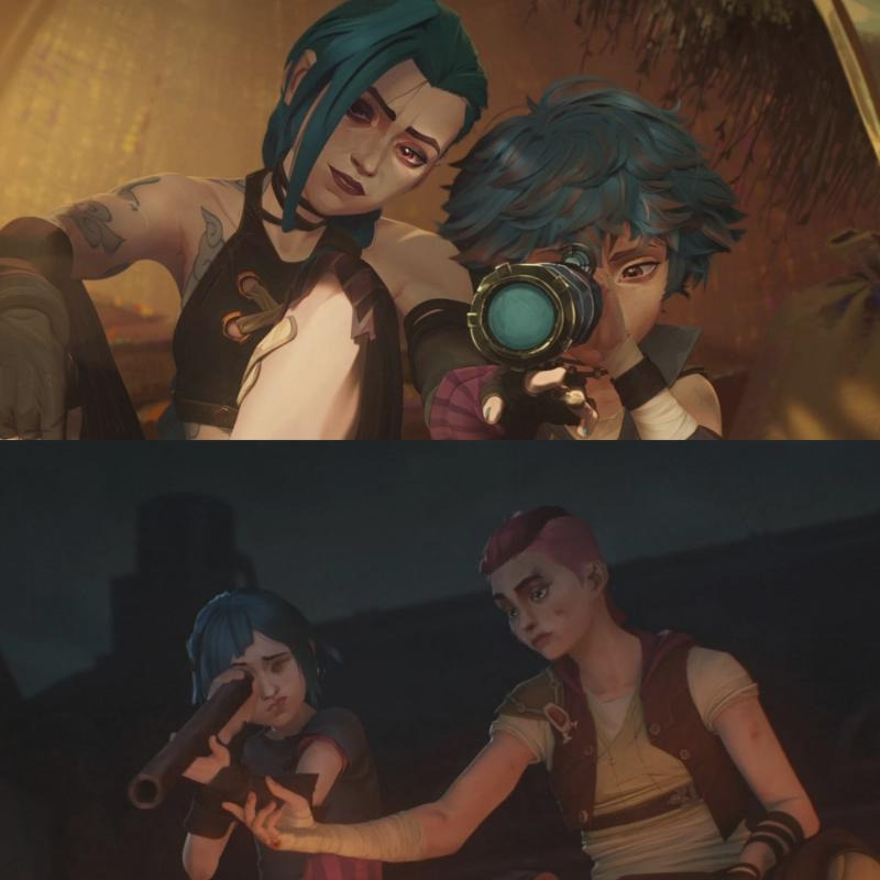 Кстати очередная параллель, что и там и тут потеря сестры. Какая это по счёту уже смерть на глазах Джинкс?