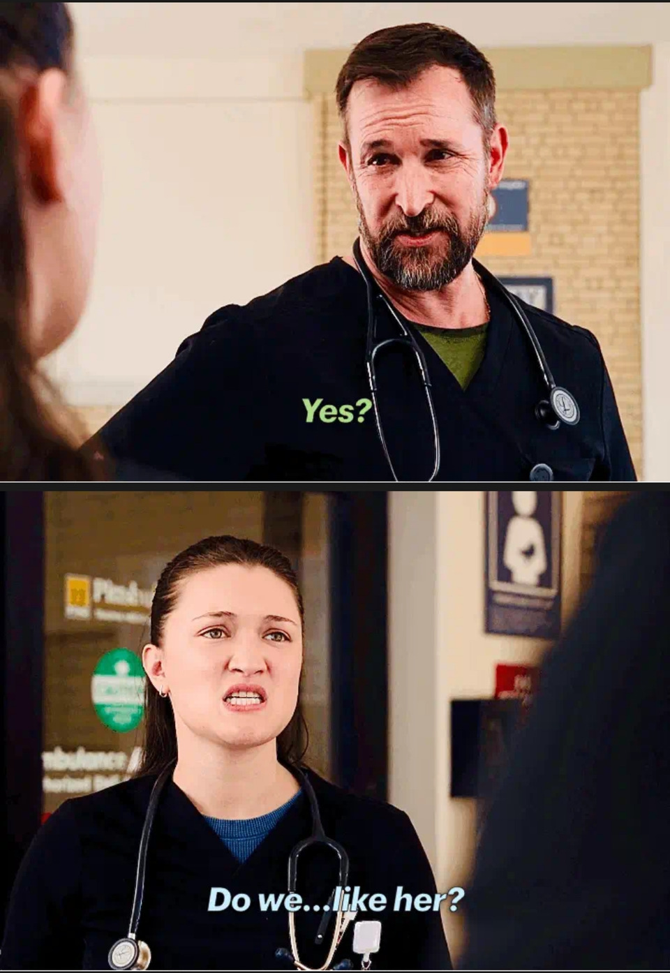 ну Сантос, конечно, в своём репертуаре)) "Ой, ты что, до сих пор грузишься из-за своего суда? Пф! Эниуэй, не мешайте мне, я тут гружусь из-за того, что доктор Аль-Хашими сказала мне выполнять свою работу". ок, доктор Сантос, ваши страдания, конечно, важнее))) но я всё равно уважаю, как она не гонит Мэл грубыми словами, когда та явно её отвлекает, а всё равно старается (в меру своих возможностей xD) быть с ней вежливой.